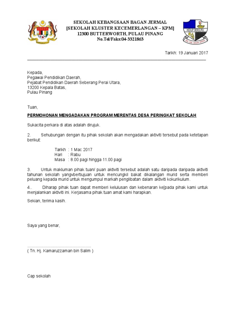 Surat Permohonan Rasmi Sekolah 2017 Ke Ppd Pdf